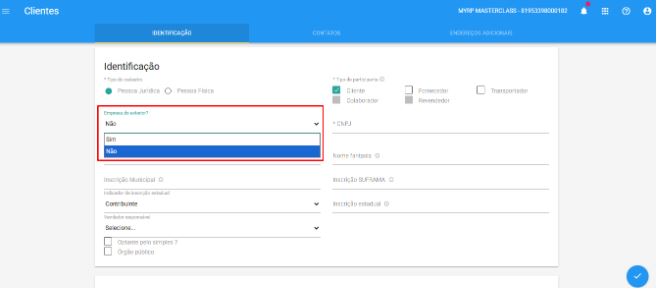 No campo Empresa do exterior selecione SIM quando a empresa não for do Brasil.