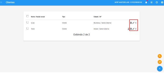 Para alterar, excluir ou visualizar os cadastros, basta clicar nos ícones ao lado.