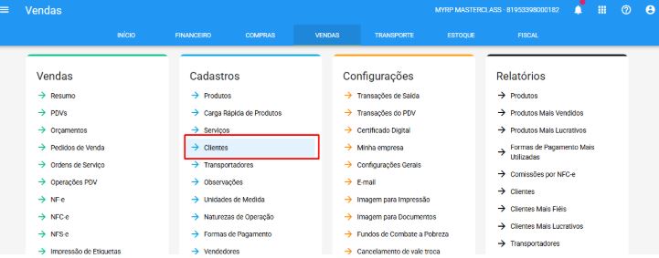 Clique em Clientes em cadastros.